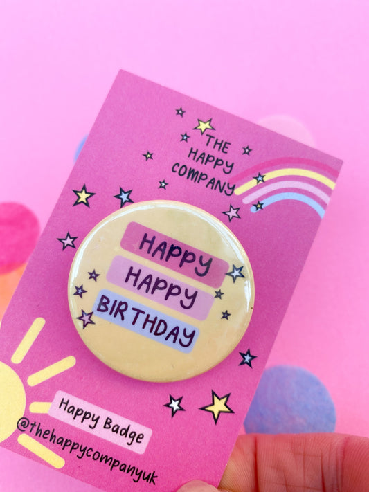 Birthday Pin Badge | Happy Birthday yellow and pink badge