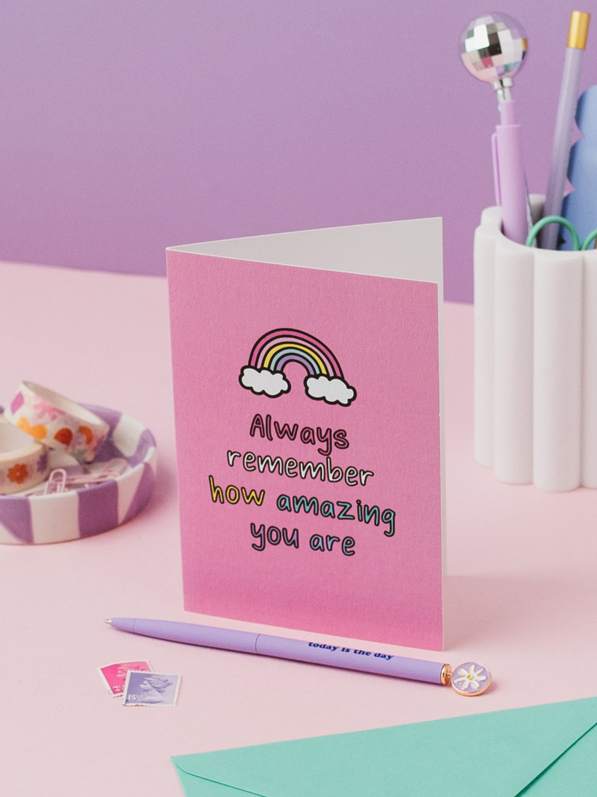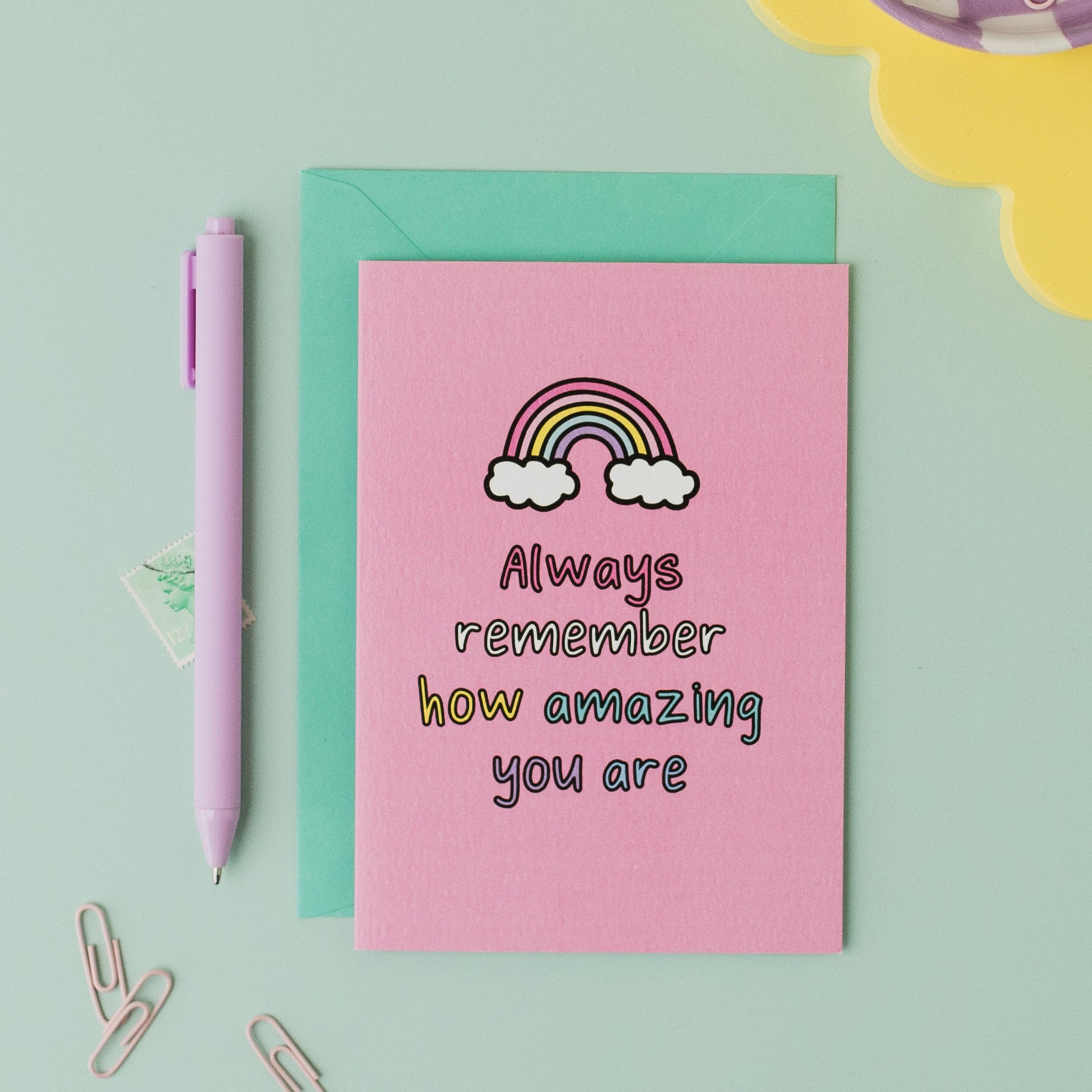 Let someone know how amazing they are with our Always Remember How Amazing You Are Card! This pink card comes with a turquoise envelope to add a pop of color. Share some love and positivity with just a simple card.
