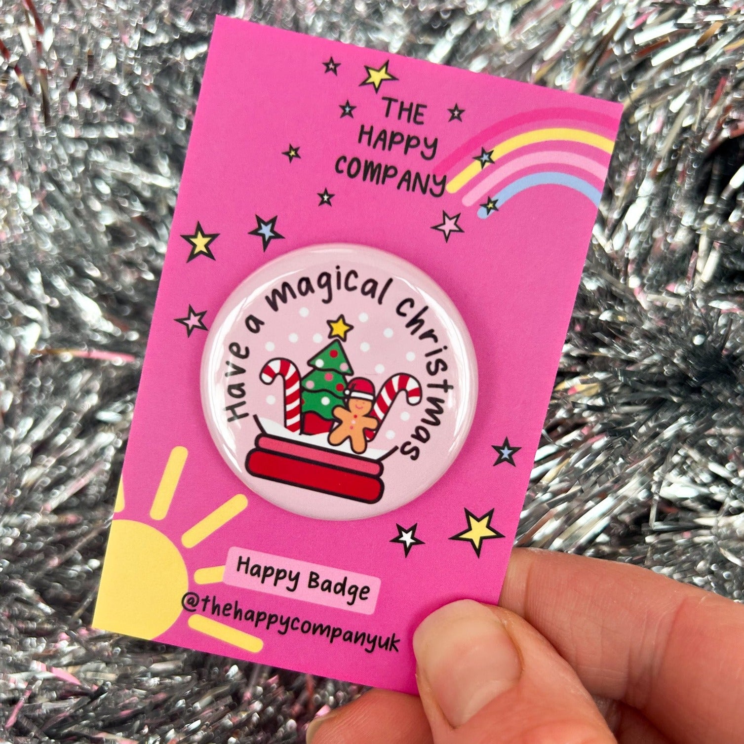 Spread festive cheer everywhere you go with this Christmas Snow Globe Pin Badge!