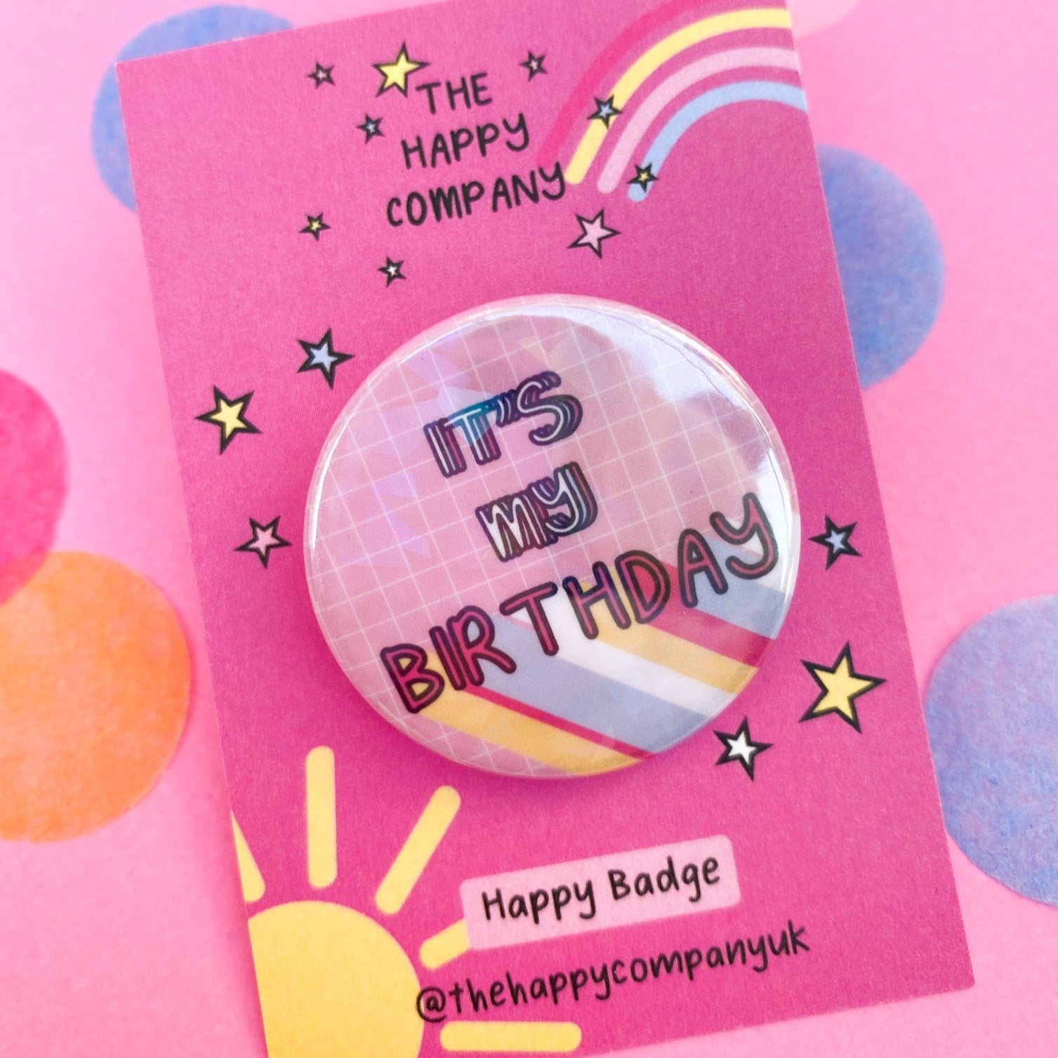 Birthday Pin Badge | Happy Birthday yellow and pink badge