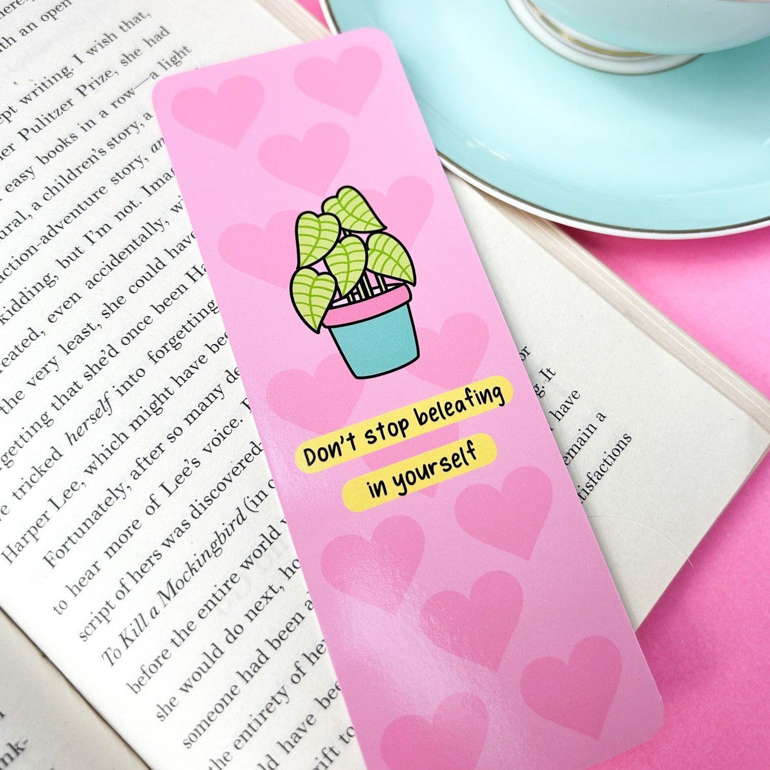 This Don't Stop Beleafing In Yourself Bookmark will give you the motivation to keep believing in yourself! This special bookmark comes with an inspiring affirmation and features a cute plant, so you can be reminded of the beauty and strength all around you. 🌿
