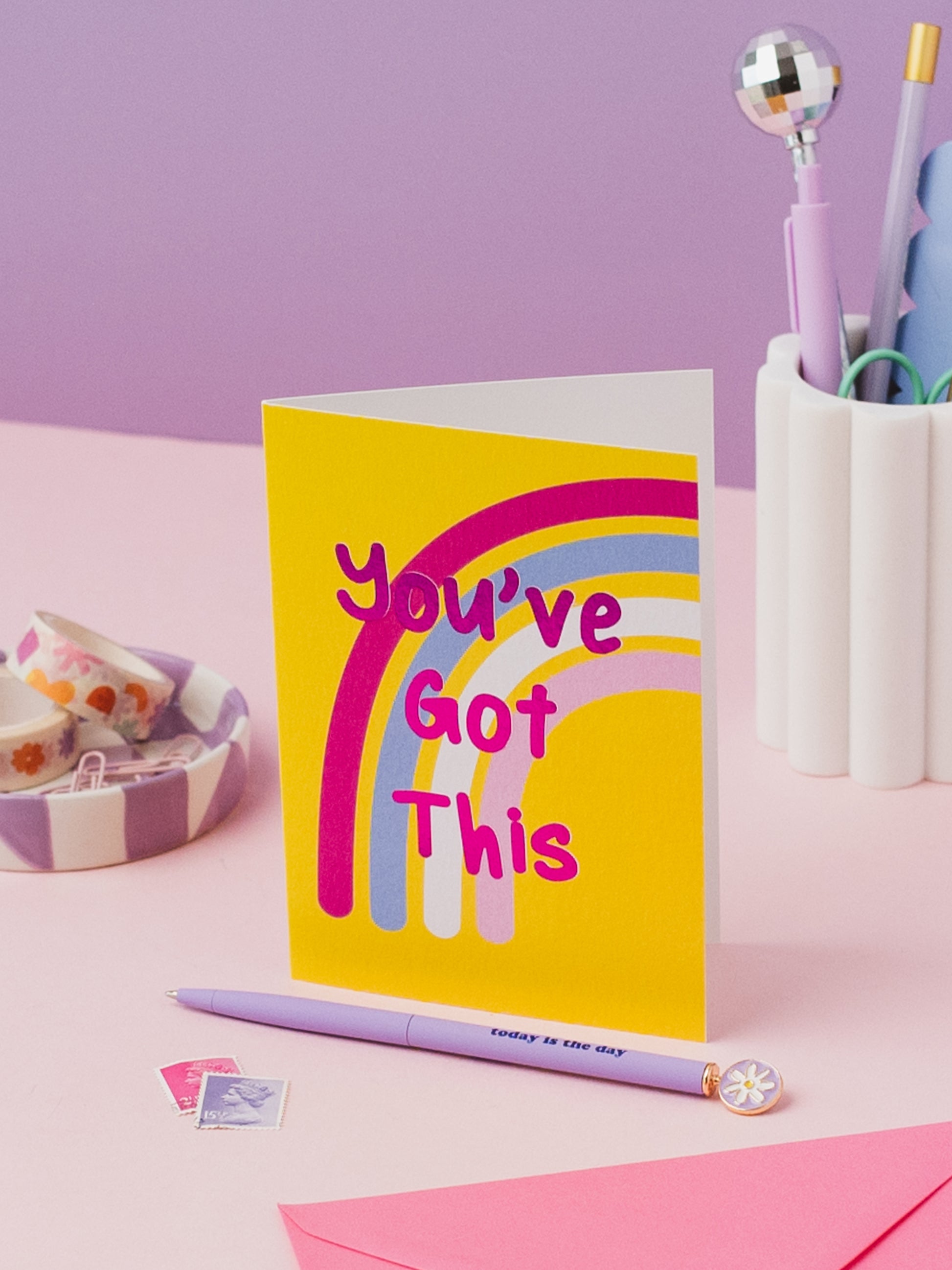 Boost someone's confidence with our You've Got This Card. With a vibrant rainbow design and motivational message, this card is perfect for exams, new jobs, and more. Comes with a pink envelope for added flair. Don't worry, they've got this!