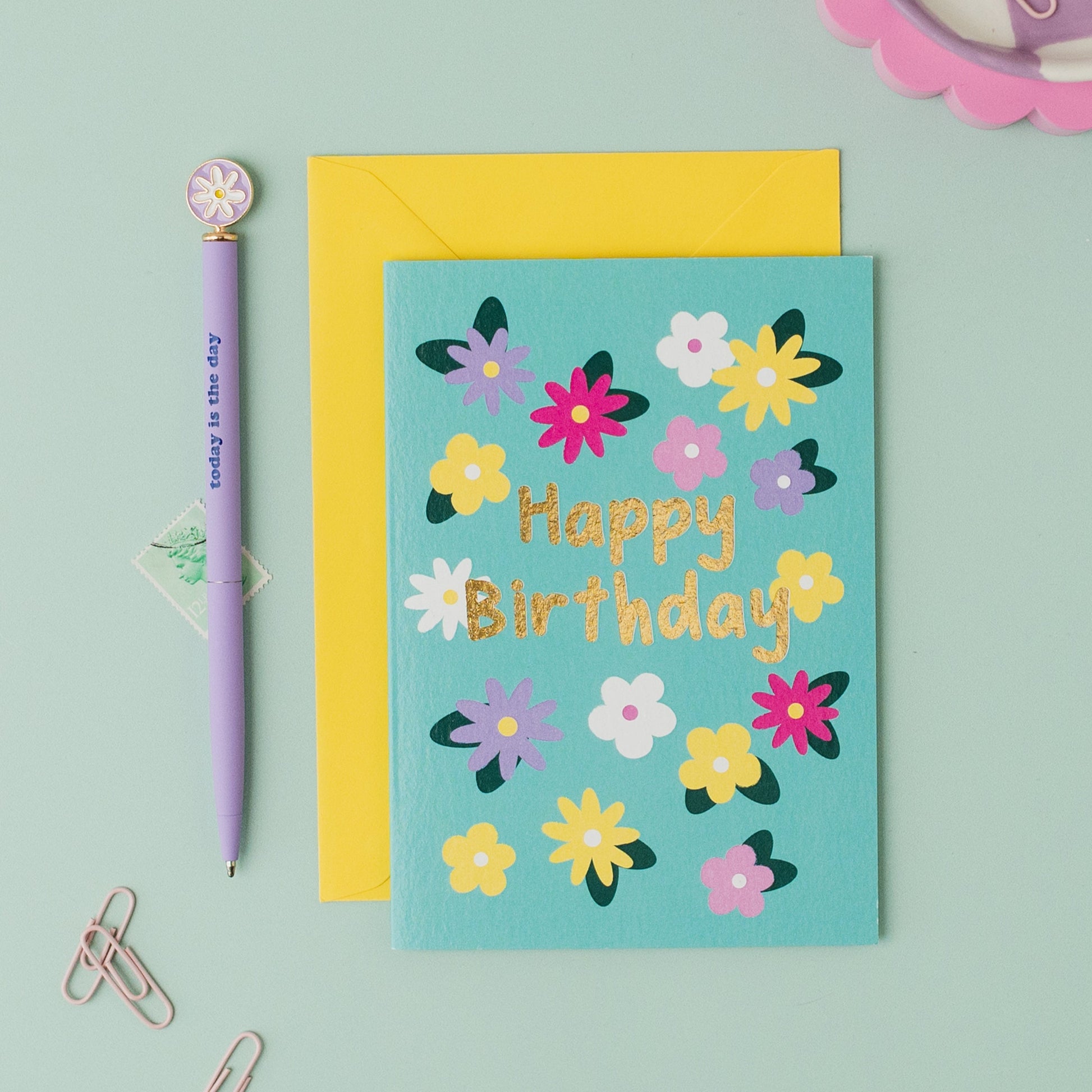 Celebrate in style with our Floral Gold Foil Birthday Card. Featuring a stunning floral design and luxurious gold foil detailing, this card is sure to make the recipient feel special on their special day. Comes with a yellow envelope.