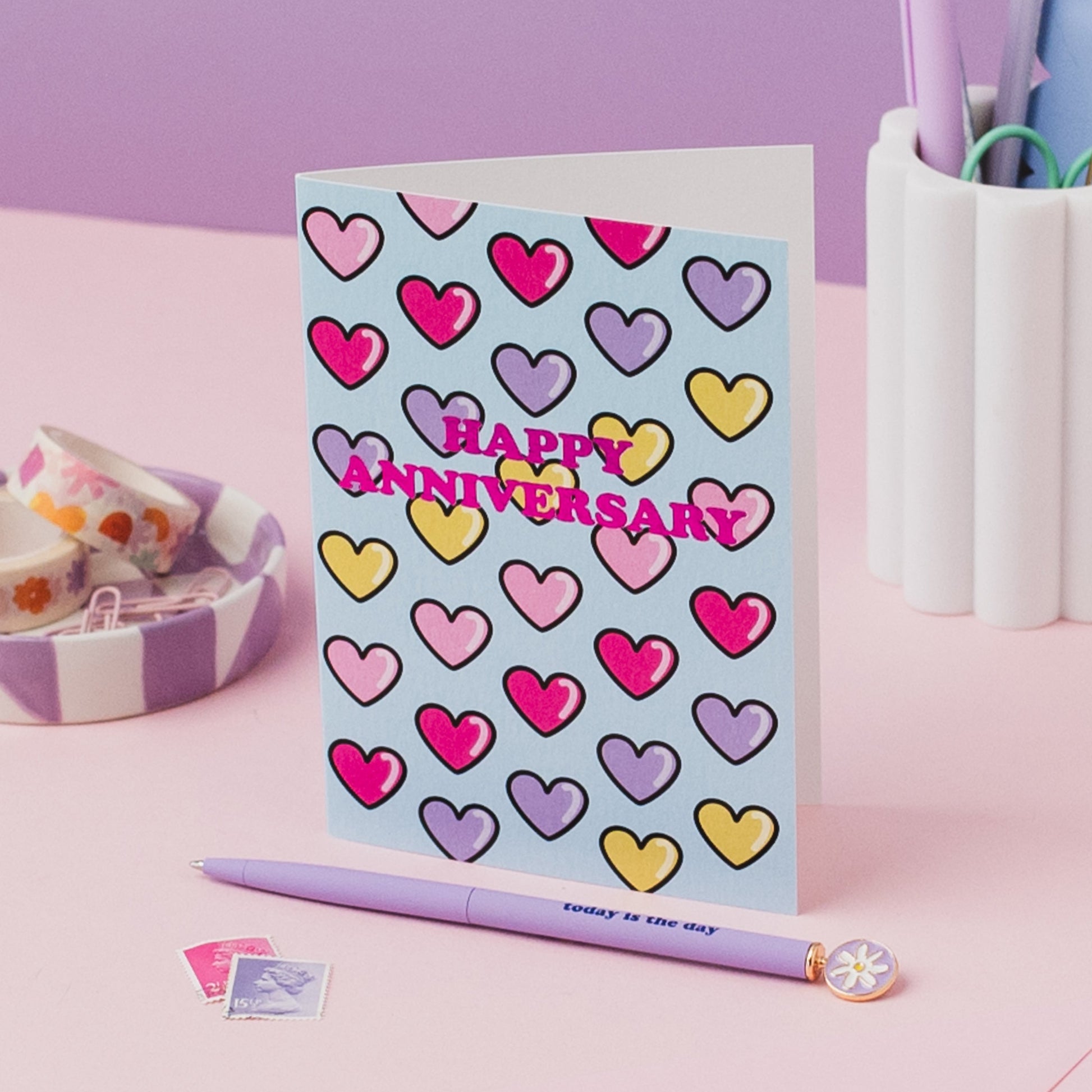 Share the love with our Colourful Heart Anniversary Card! Adorned with a vibrant heart design, this card is sure to make them smile. Comes with a light pink envelope for a sweet touch. Express your love in a colourful way!