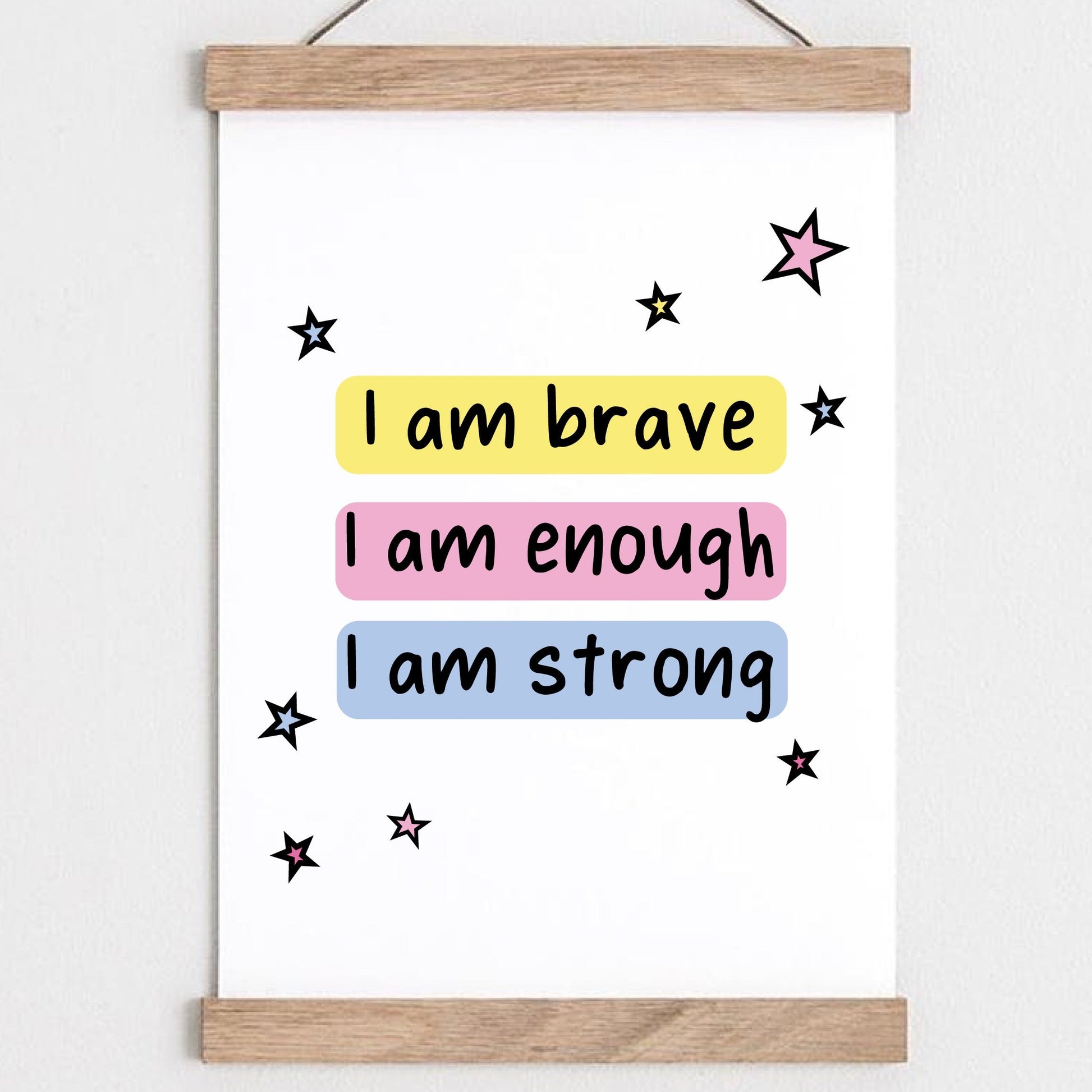 I am Brave, I am Strong, I am enough affirmation wall art print.
