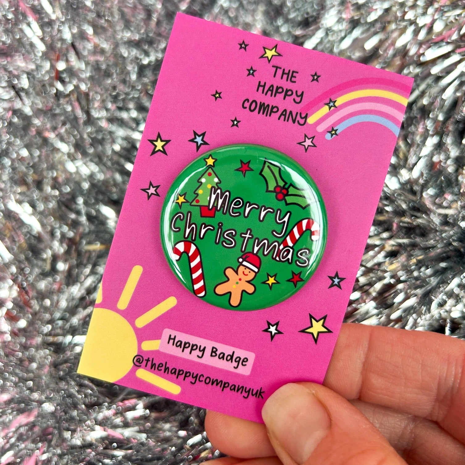 This Merry Christmas Green Pin Badge is a fun way to spread holiday cheer! Show off your festive spirit with this cute doodle badge!