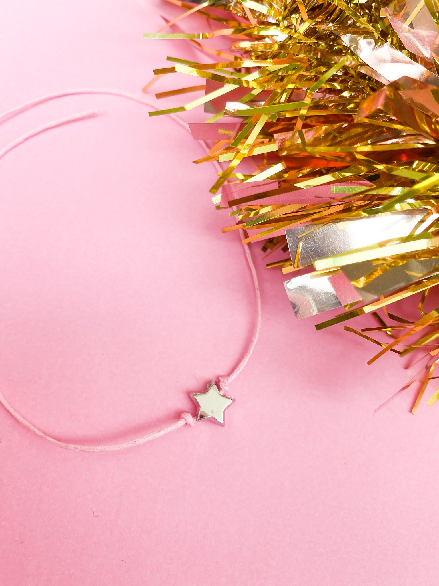 Handmade from pink wax cotton cord and a star charm left untied for you to fit to the perfect size.