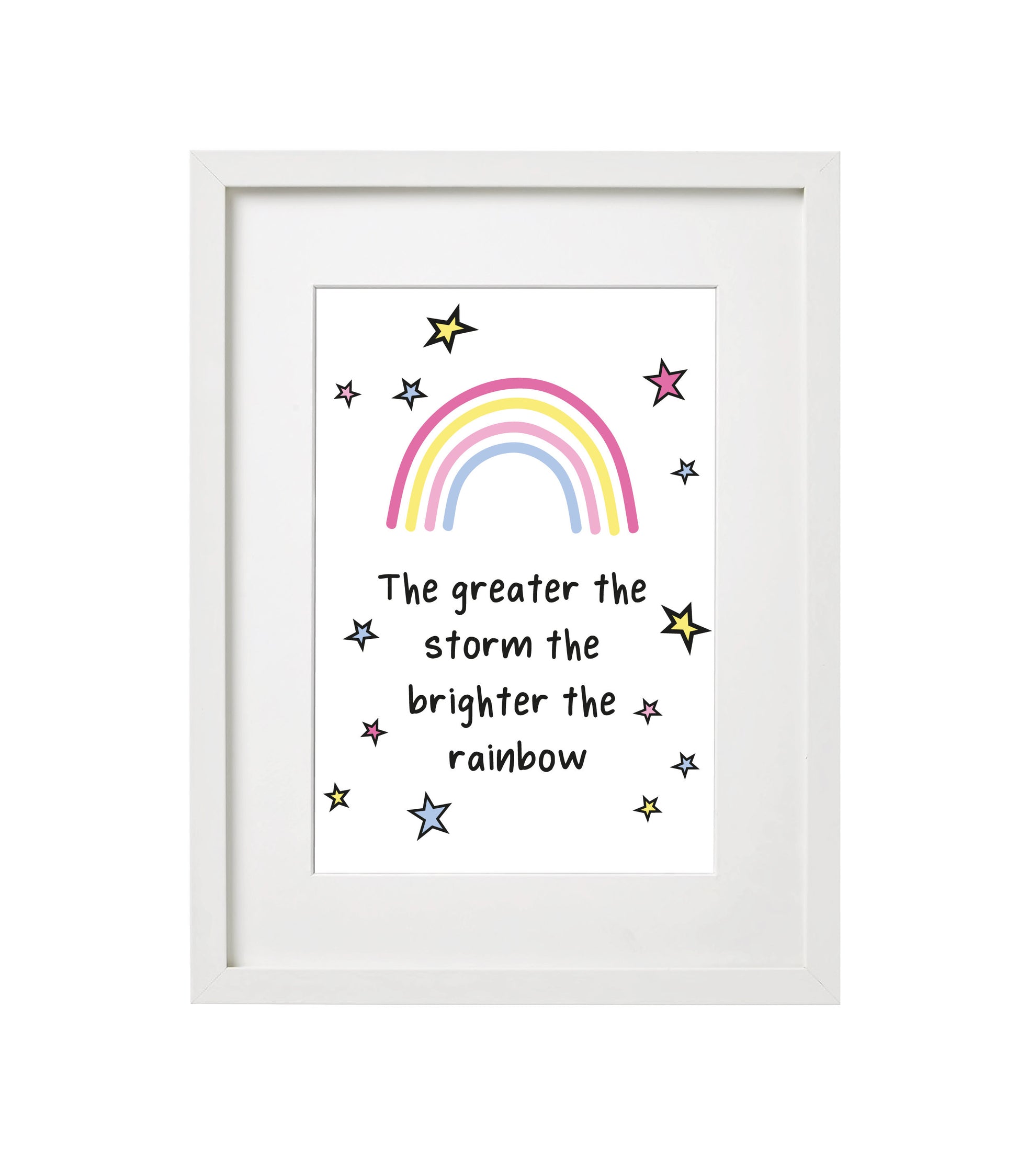 The Greater the Storm the Brighter the Rainbow- Inspiration and affirmation quote wall art.