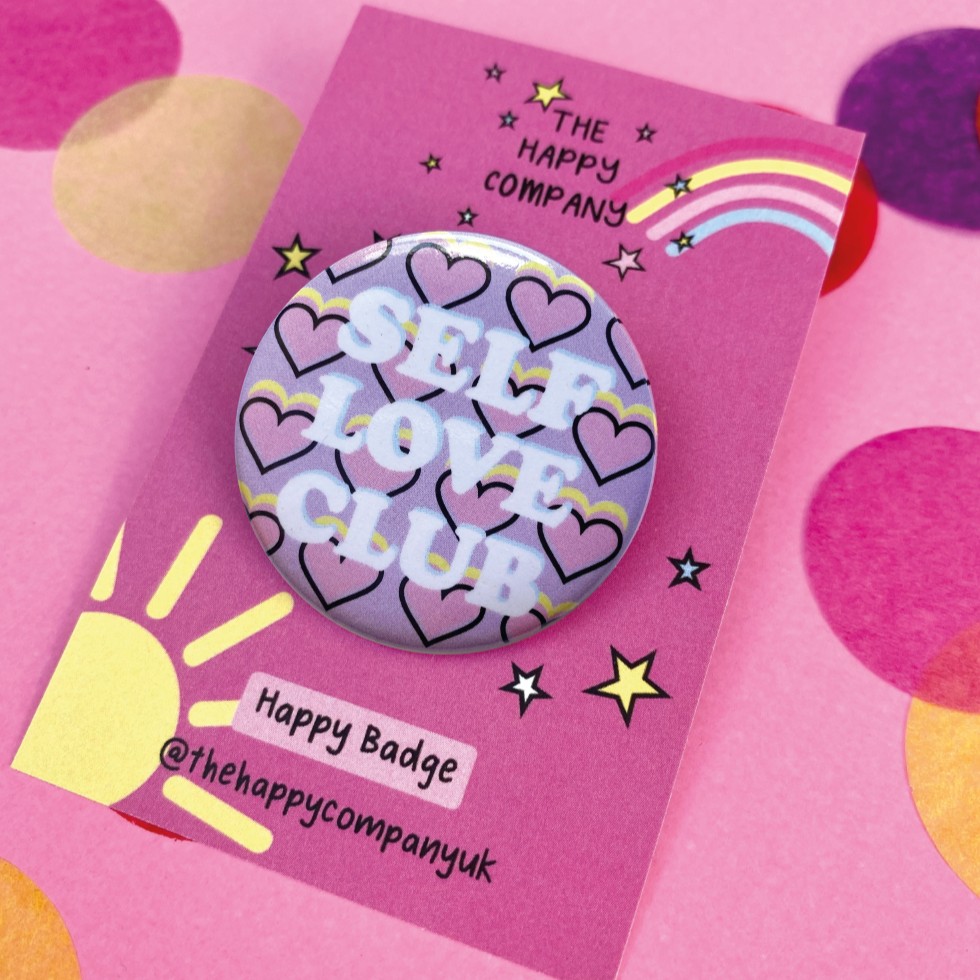 Our badge is 38mm wide with a silver long pin back, and a glossy finish on the front. Each badge is on our pink backing cards, and make the best gifts.