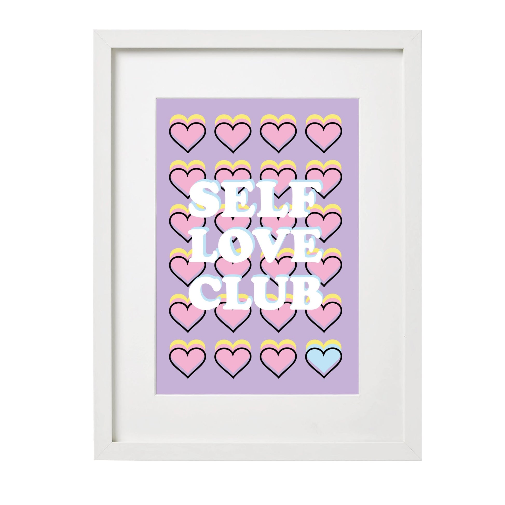 Self Love Club Wall Art Print, Fun Bold Lilac and Pink Print