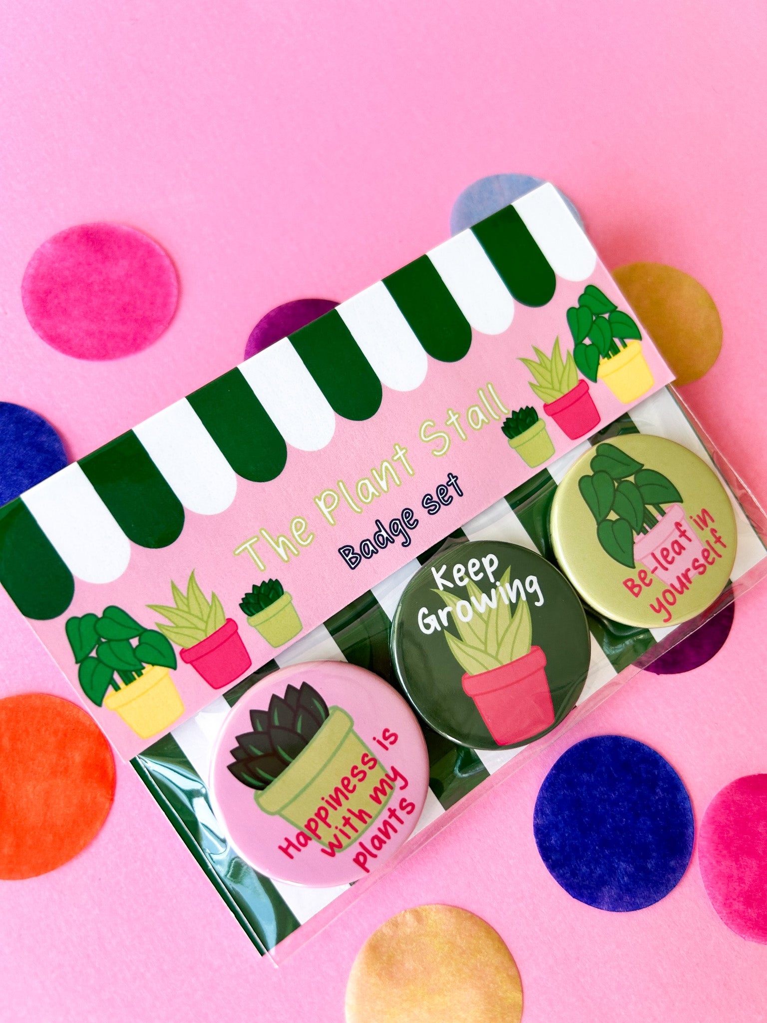 The perfect gift for any plant mum. Included 3 fun plant badges with positive quotes.