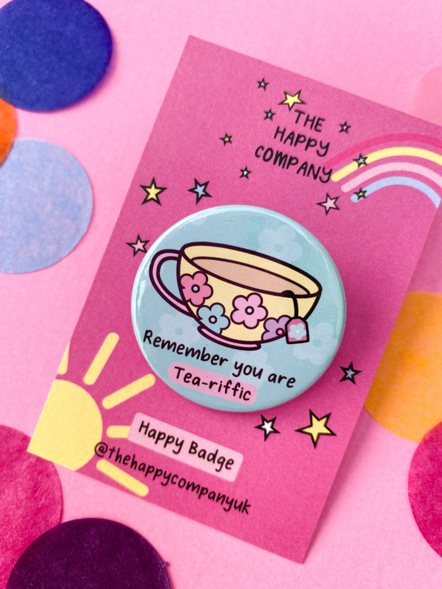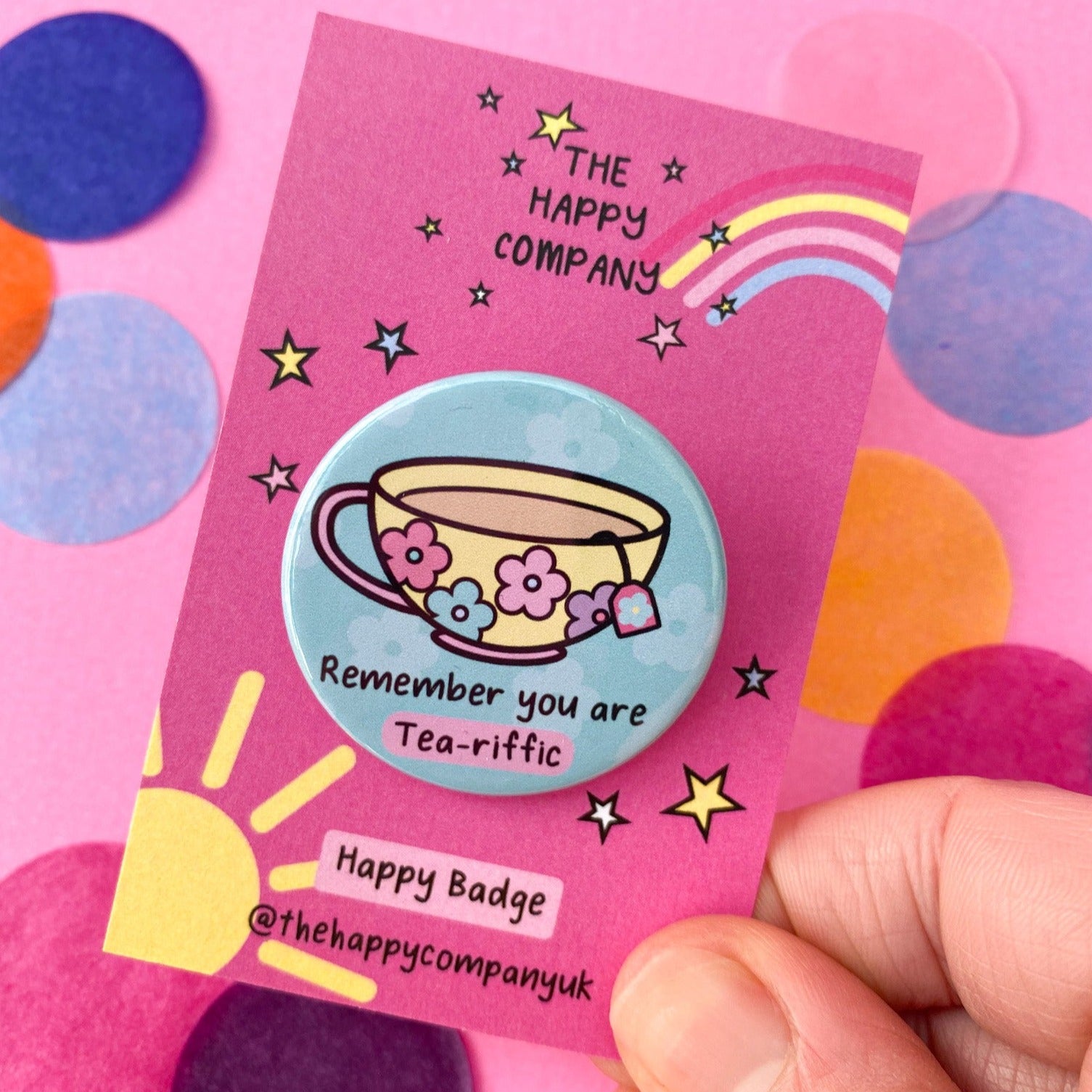 Make sure to show the world just how tea-riffic you really are with this delightful pin badge! Perfect for any tea lover or affirmation enthusiast, this motivational badge will remind just how amazing you really are! Add a little positivity to your wardrobe today!